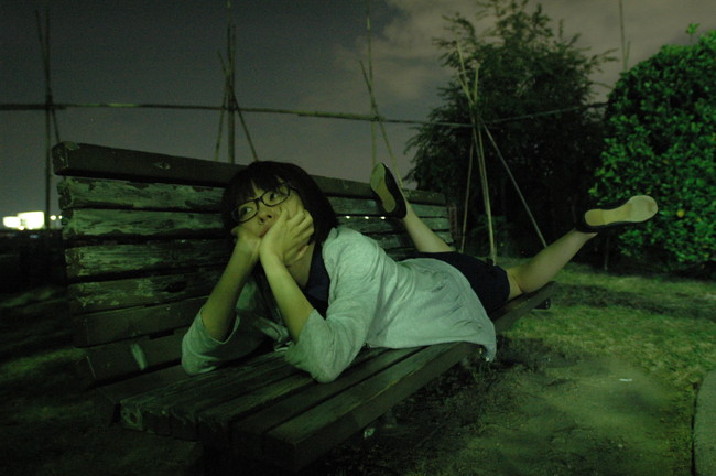 さらにリラックス。おしゃれメガネ女子です。