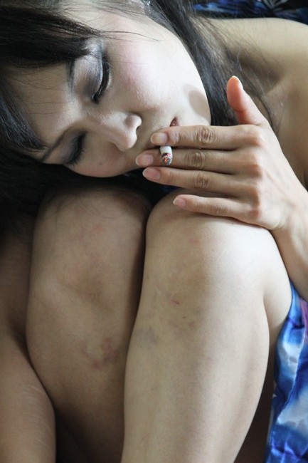 全身に切り取り線のついた女が銀色のハサミで身体を禊ぐかのように丁寧に切り落としていく。